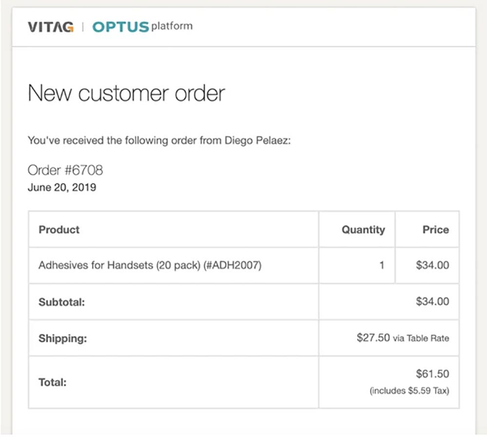 Once order is approved, the store receives a notification email similar to this: